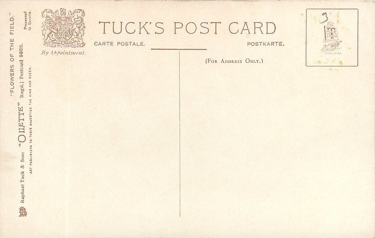 OILETTE, come Oilfacsim but not so trade-named, come beaded, PRINTED IN ENGLAND with or w/o COPYRIGHT LONDON, listed in 1908/1909 & 1911/1912 & 1912/1913 & 1913/1914 & 1927/1928 POSTCARD Catalogues