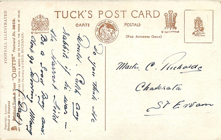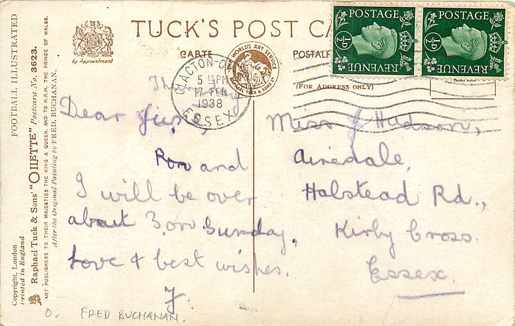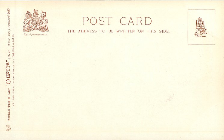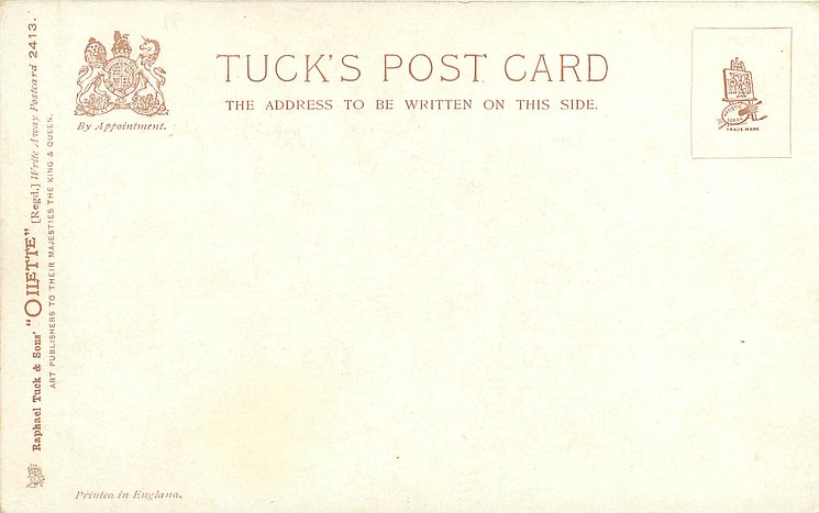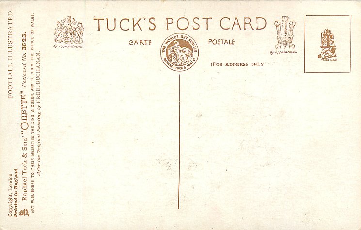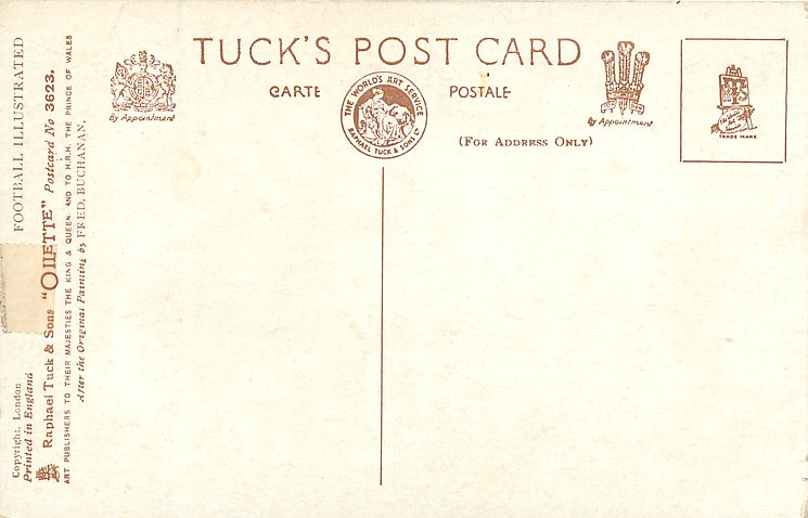 OILETTE, PRINTED IN ENGLAND, COPYRIGHT LONDON, AFTER THE ORIGINAL PAINTING BY FRED. BUCHANAN, listed in 1930 POSTCARD Catalogue
