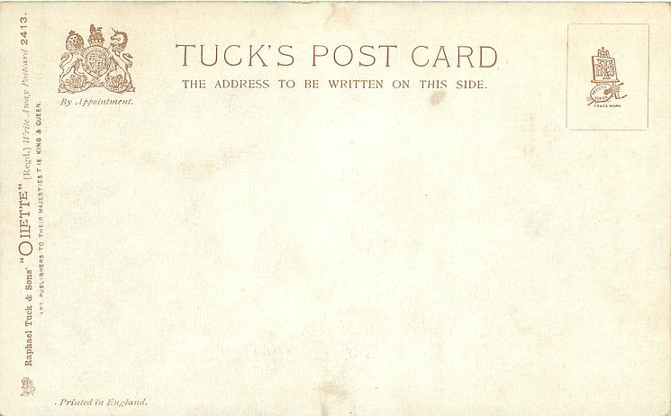 OILETTE, DESIGNED AND PRINTED IN ENGLAND or PRINTED IN ENGLAND, AFTER THE BLACK & WHITE DRAWING BY S.T. DADD (one card by C.M. PADDAY), listed in 1904 & 1908/1909(USA) POSTCARD Catalogue