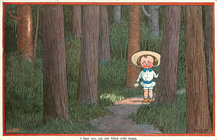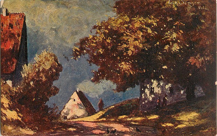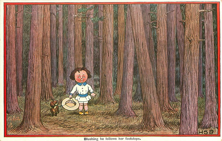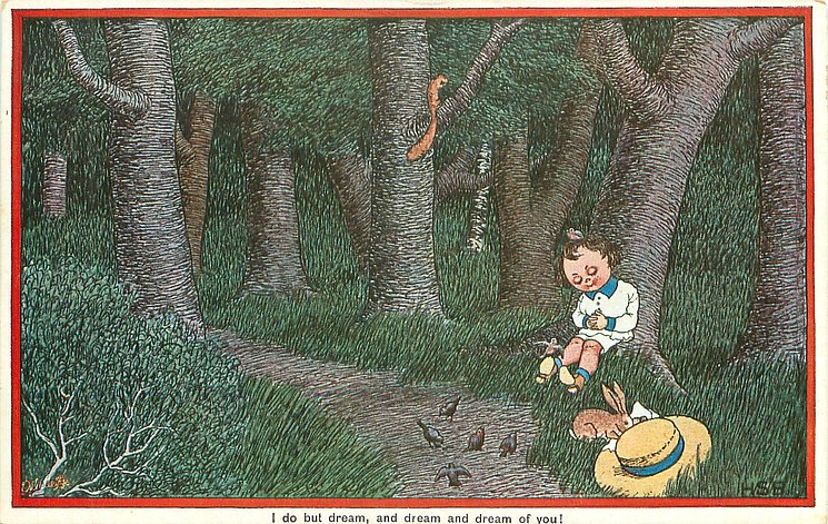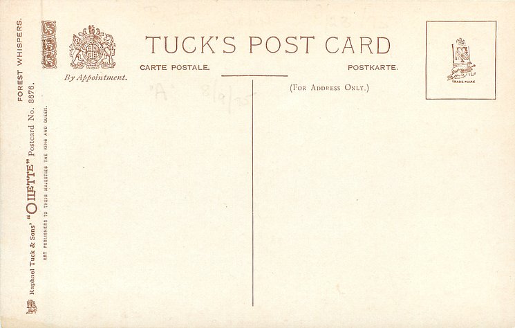 OILETTE, PROCESSED IN BAVARIA, comes covered by filigree during World War I, same image, German back, OILETTE 977 DAS LAUSCHEN IM WALDES