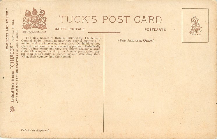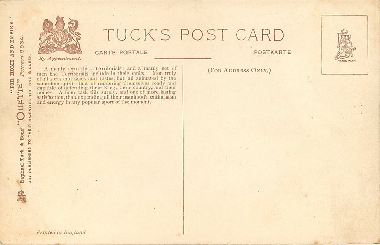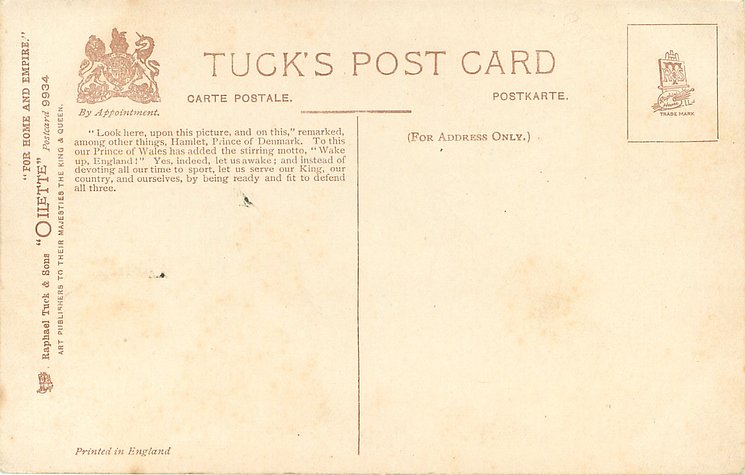 OILETTE, PRINTED IN ENGLAND, listed in 1911/1912 & 1913/1914 Postcard Catalogues