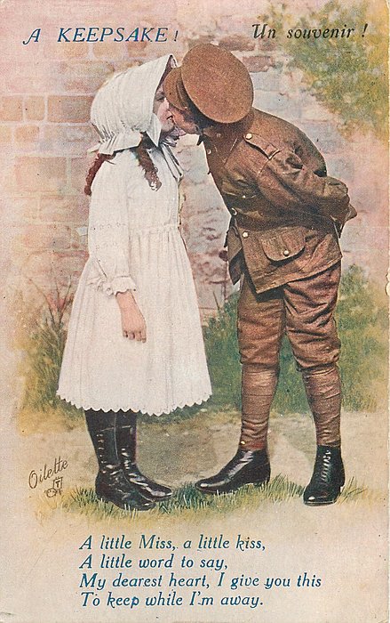 front verse cont'd: A LITTLE WORD TO SAY, MY DEAREST HEART, I GIVE YOU THIS TO KEEP WHILE I'M AWAYcomes UN SOUVENIR!,