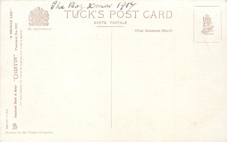 OILETTE, come Oilfacsim, PRINTED IN ENGLAND with or w/o COPYRIGHT LONDON, listed in 1908/1909 & 1911/1912 & 1913/1914 &1930 POSTCARD Catalogues, listed in TUCK'S TRAVELOGUES (USA?1905)