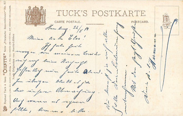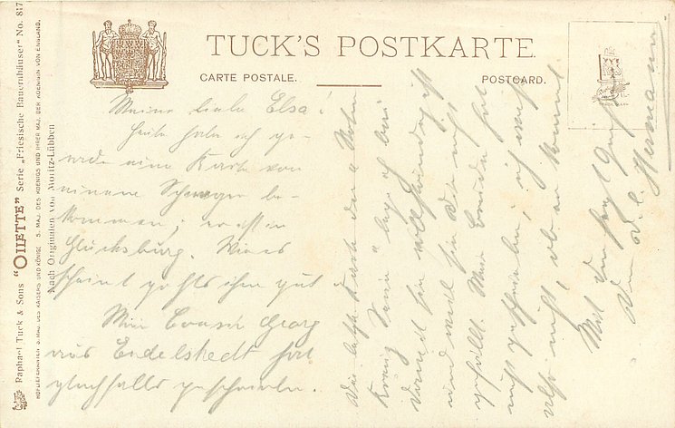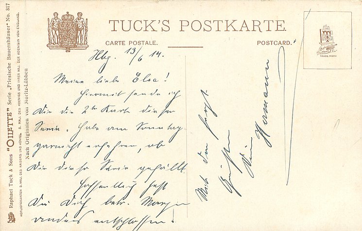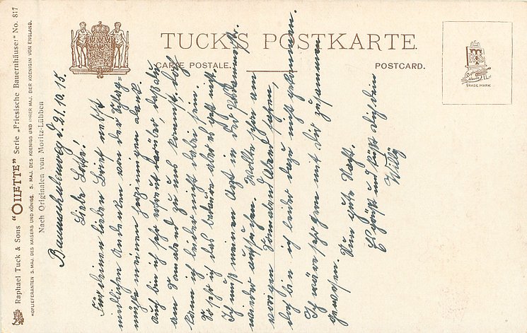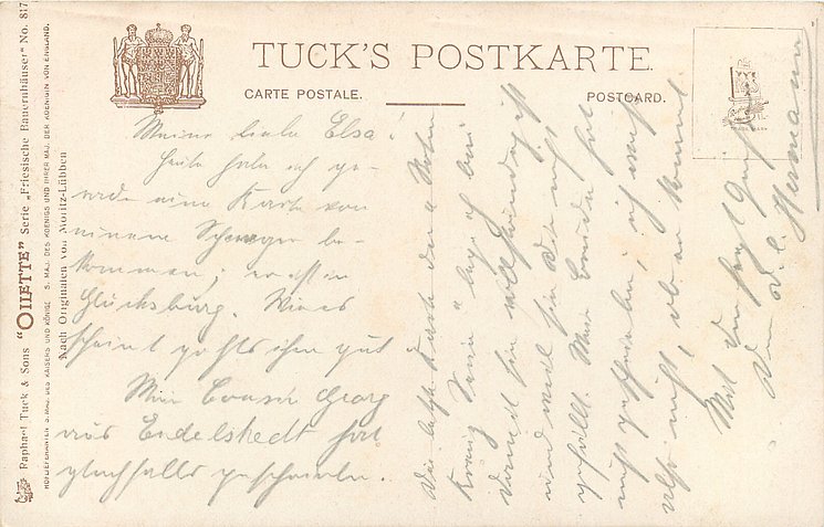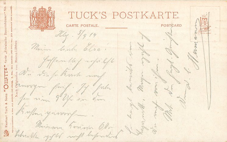 OILETTE, WIDE-WIDE-WORLD, PROCESSED IN BAVARIA (in stamp box), listed in 1908/1909 & 1911/1912 & 1913/1914 &1930 POSTCARD Catalogues, identical front titles STIMMUNGSBILD AUS THURINGEN in German, back titles in German with descriptions in English