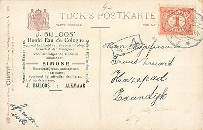 OILETTE, come with Dutch advert on back COOPERATIVE STOOMZUIVELFABRIEK//PRIJSCOURANT