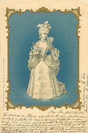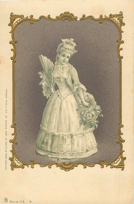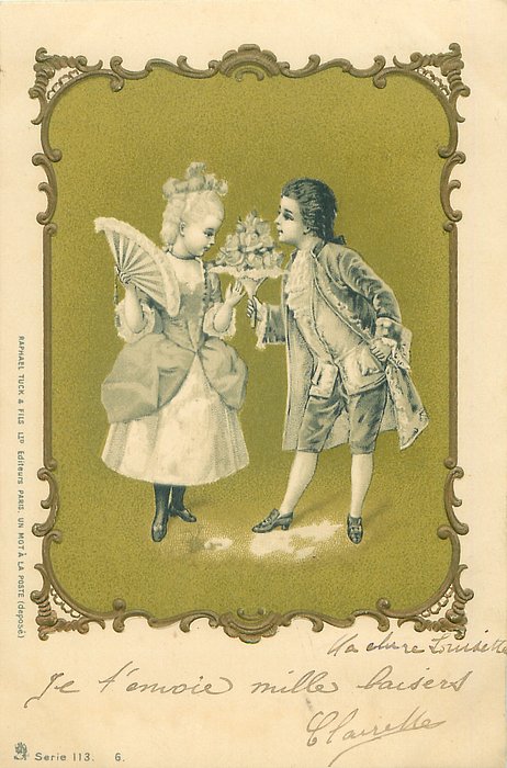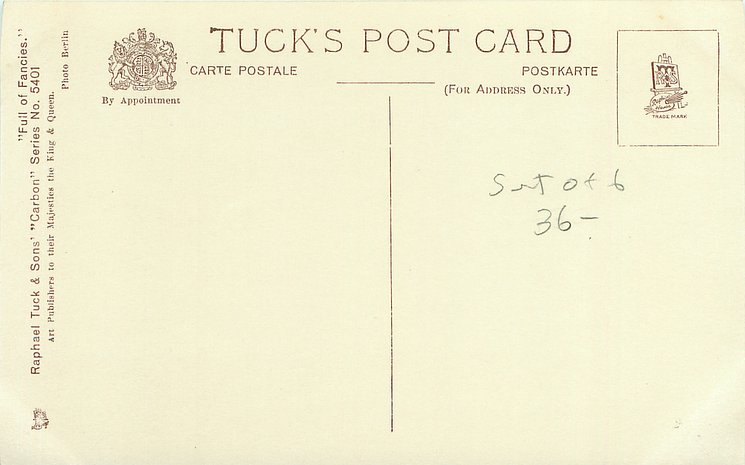 ART, CHROMOGRAPHED IN SAXONY (in stamp box), same images, German backs 354B, French backs SERIE 760, listed in 1908/1909(USA) postcard catalogue