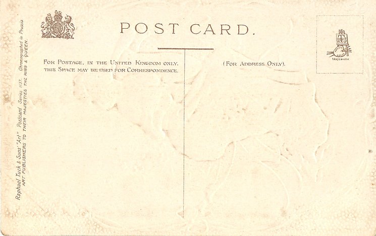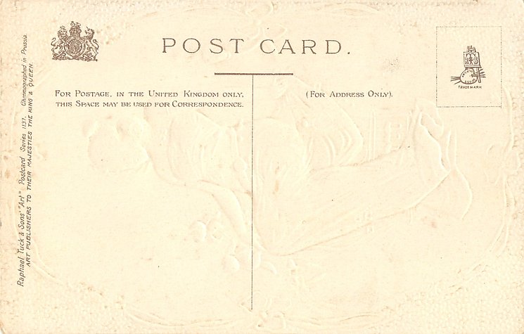 ART, gilt embossed, CHROMOGRAPHED IN PRUSSIA, listed in 1904 POSTCARD Catalogue