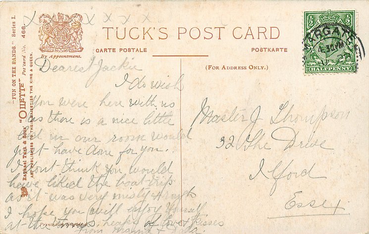 comes opt. in blue ST. LEONARDS IS REALLY A JOLLY PLACE, ON THE SANDS AT MORECAMBE, PLENTY OF FUN AT DOUGLAS, WE ARE HAVING A JOLLY TIME DOWN AT HERNE BAY or NEWQUAY IS A REALLY JOLLY PLACE