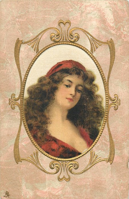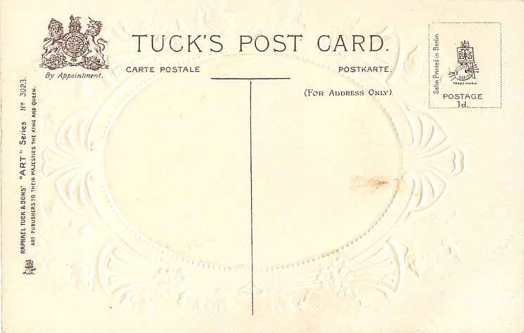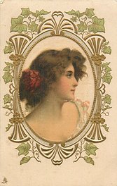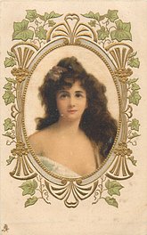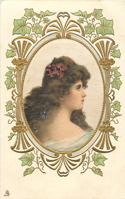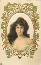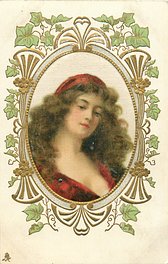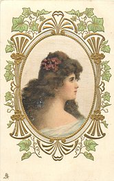 ART, SATIN PRINTED IN BERLIN (in stamp box), oval silk panels, embossed gilt & ivy surrounds, no girls names, see2731
