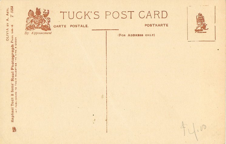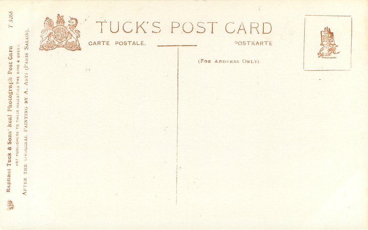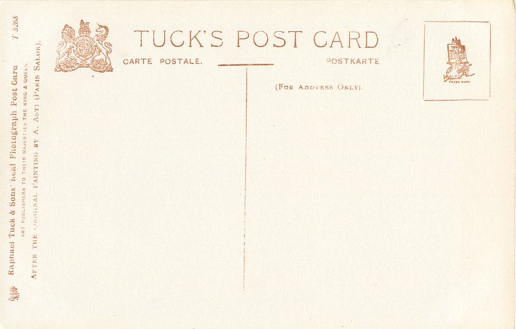CONNOISSEUR, CHROMOGRAPHED IN BERLIN (in stamp box), 2 backs, AFTER THE ORIGINAL PAINTING BY A. ASTI (PARIS SALON), listed in 1911/1912 & 1912/1913 & 1913/1914 POSTCARD Catalogues
