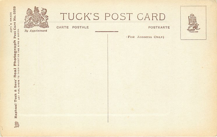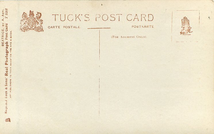 REAL PHOTOGRAPH, unusual set of 6 in T series, numbered also on front w/o prefix, 3 backs, come hand-coloured, listed in 1908/1909 & 1911/1912 Postcard Catalogue, 5 of these images in 355B & 356B german-backs