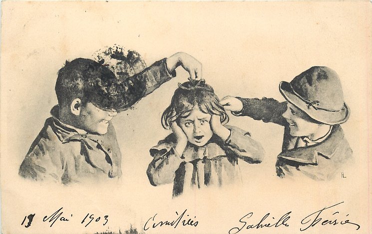 OILETTE, PRINTED IN ENGLAND with or w/o COPYRIGHT LONDON, listed as BUSY BEES in 1911/1912 & 1912/1913 & 1913/1914 & 1926/1827 POSTCARD Catalogues