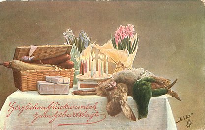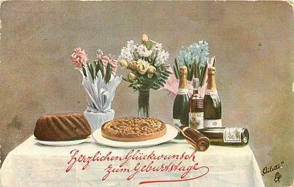 comes opt. in white HERZLICHEN GLUCKWUNSCH ZUM GEBURASTAGE or HERZLICHEN GLUCKWUNSCH ZUM GEBURASTAGE or in red w/o suffix HERZLICHEN GLUCK WUNSCH ZUM GEBURTSTAG