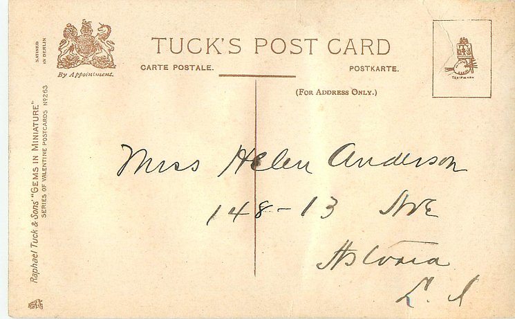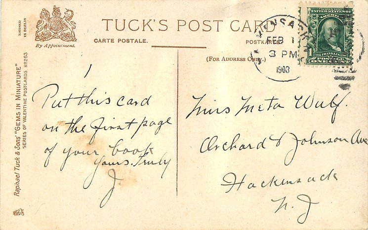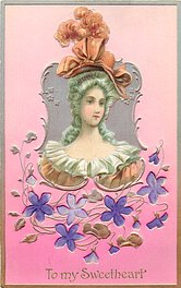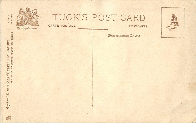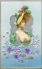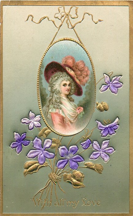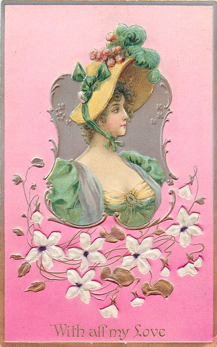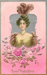 VALENTINE, front heavily embossed, gilt, flowers inset, SATINED IN BERLIN