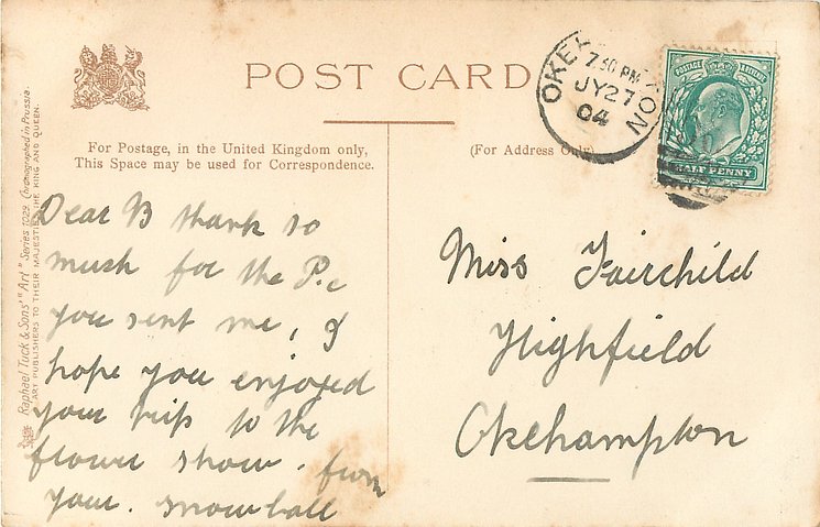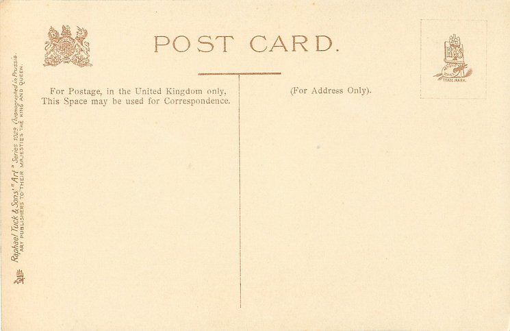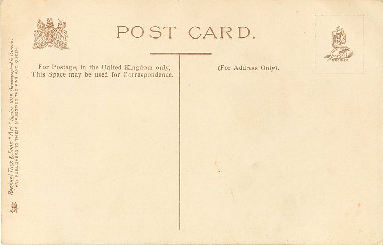 u/b or d/b, ART, CHROMOGRAPHED IN PRUSSIA, listed in 1904 POSTCARD Catalogue, same image, French back SERIE 297