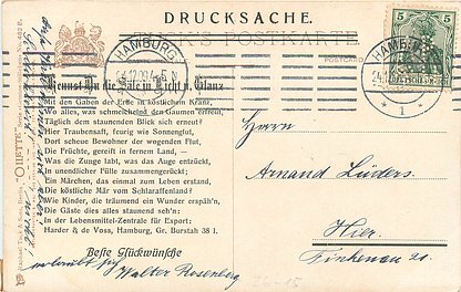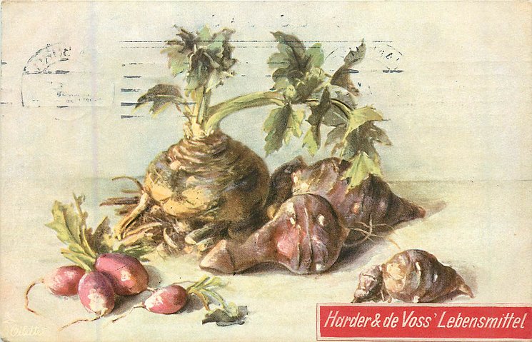 comed with HARDER & DE VOSS LEBENSMITTEL in white on red at lower tight front & half card in black on back in German see scan