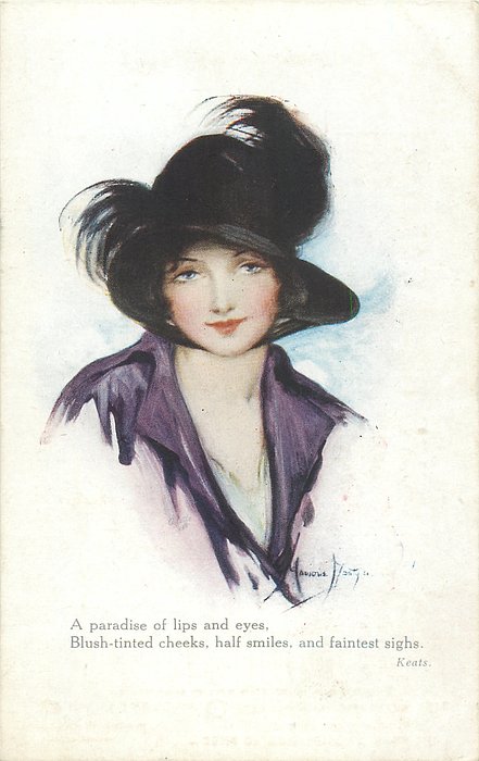 verse:- A PARADISE OF LIPS AND EYES, BLUSH-TINTED CHEEKS, HALF SMILES AND FAINTEST SIGHS., quote KEATS