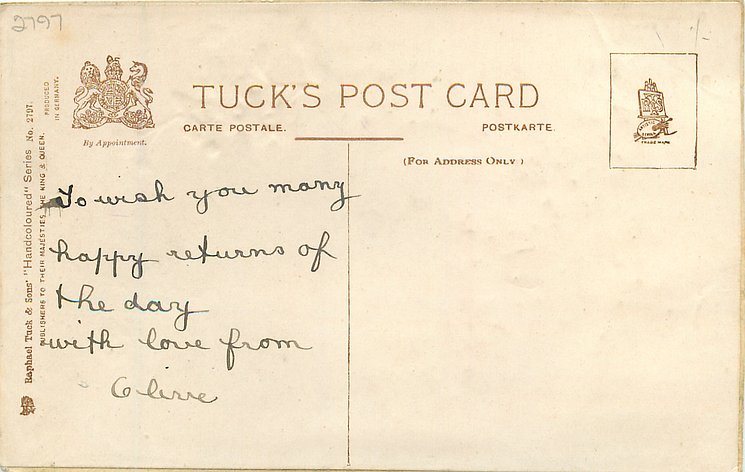 seed ad. in black on front JAY & CO.VICTORIA, B.C., MAMIE in glitter or MAY YOUR BIRTHDAY BE BRIGHT AND HAPPY