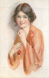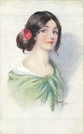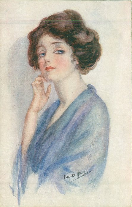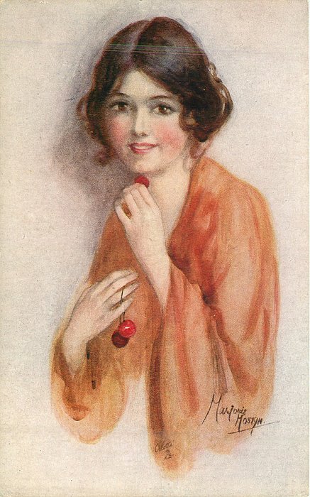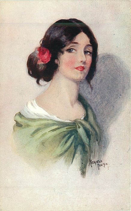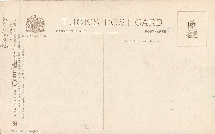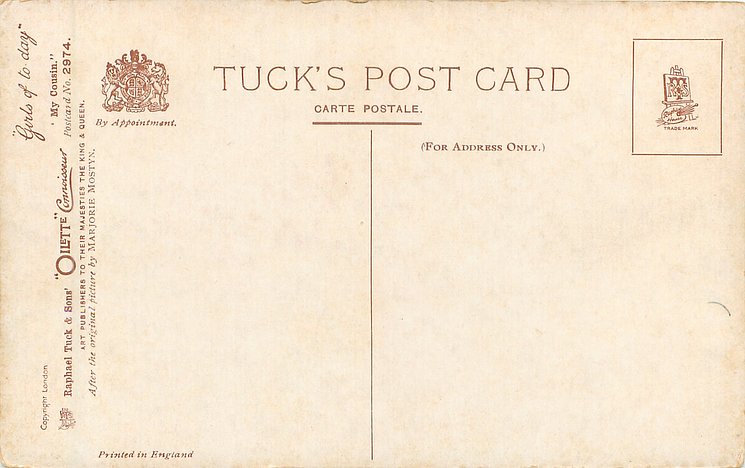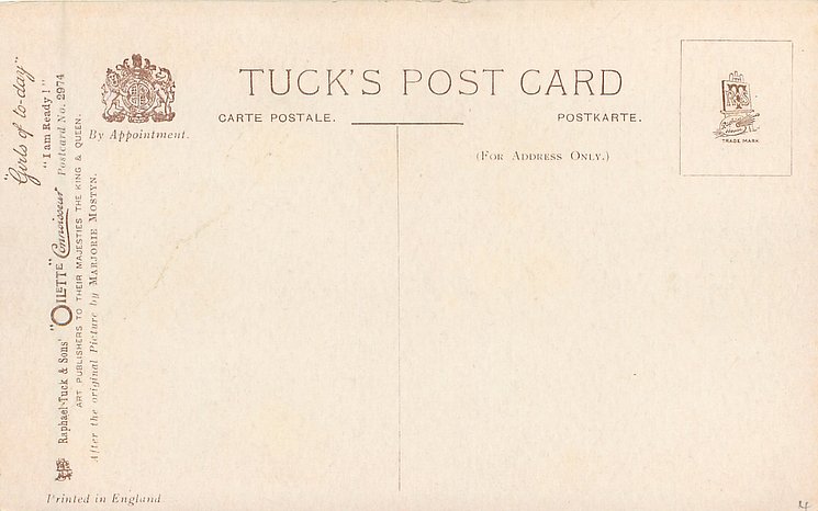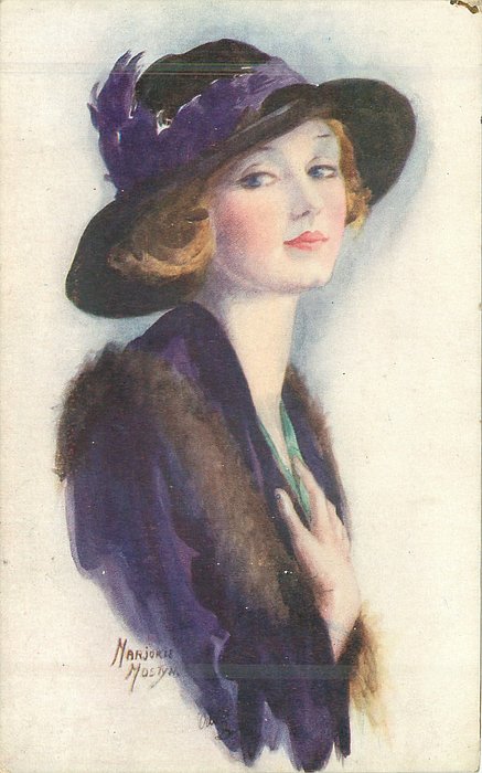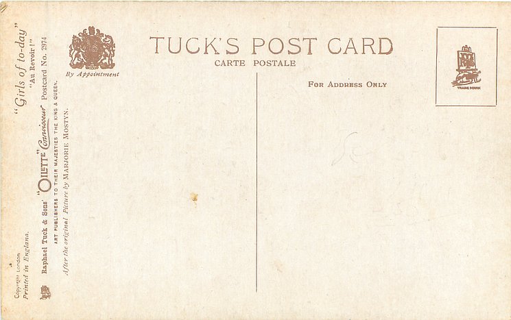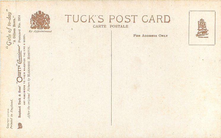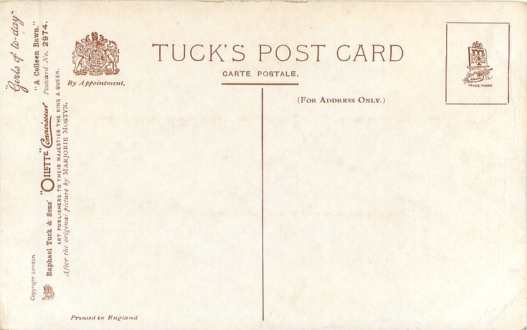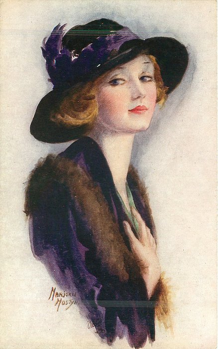 OILETTE CONNOISSEUR, PRINTED IN ENGLAND with or w/o COPYRIGHT LONDON AFTER THE ORIGINAL PICTURE BY MARJORIE MOSTYN