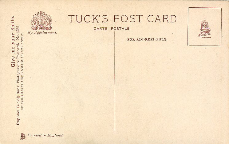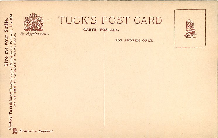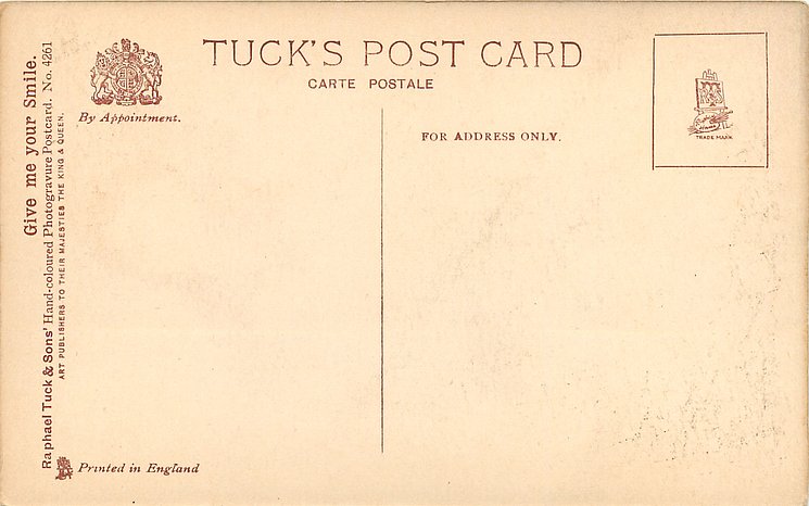 CARBONETTE or PHOTOGRAVURE, PRINTED IN ENGLAND, same image HAND- COLOURED PHOTOGRAVURE 4261, info from packets 4571 & 4634