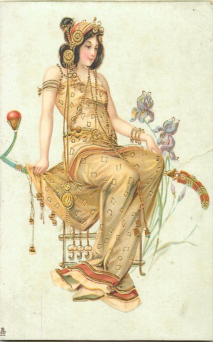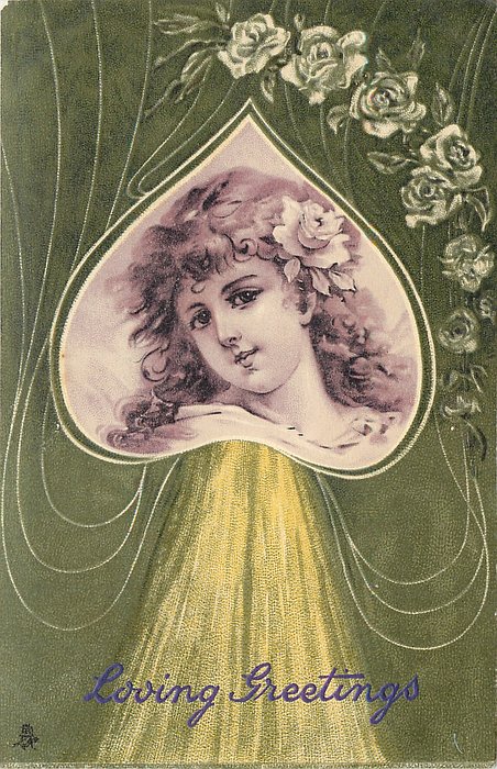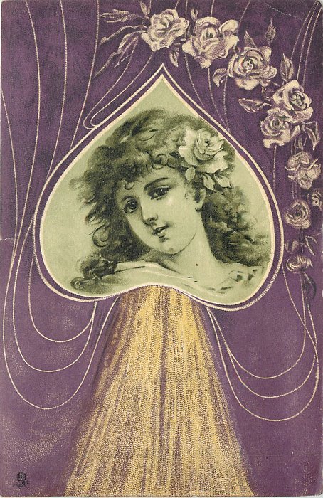 ART, gilt embossed, come with light green or pink background, CHROMOGRAPHED IN PRUSSIA