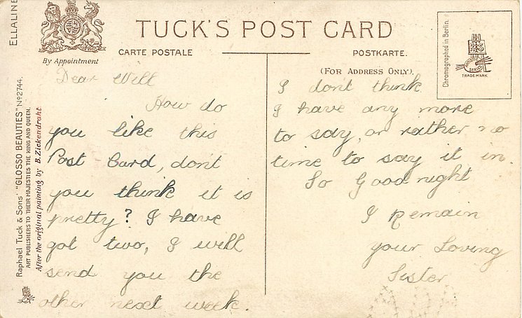 OILETTE, PRINTED IN ENGLAND, with or w/o COPYRIGHT LONDON, same basic images 1034, 1038 & C 999, listed in 1908/1909 Catalogue