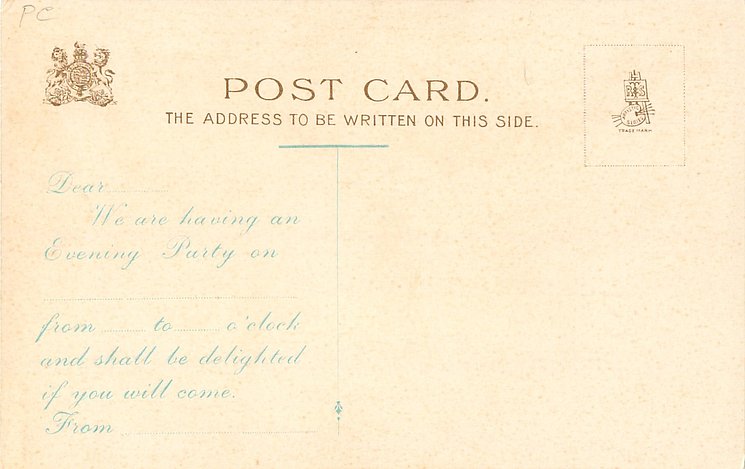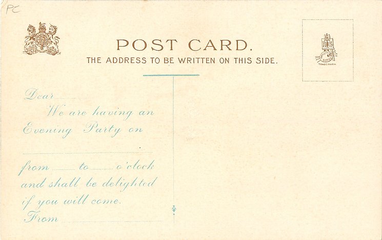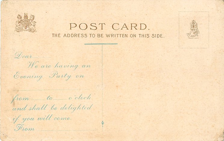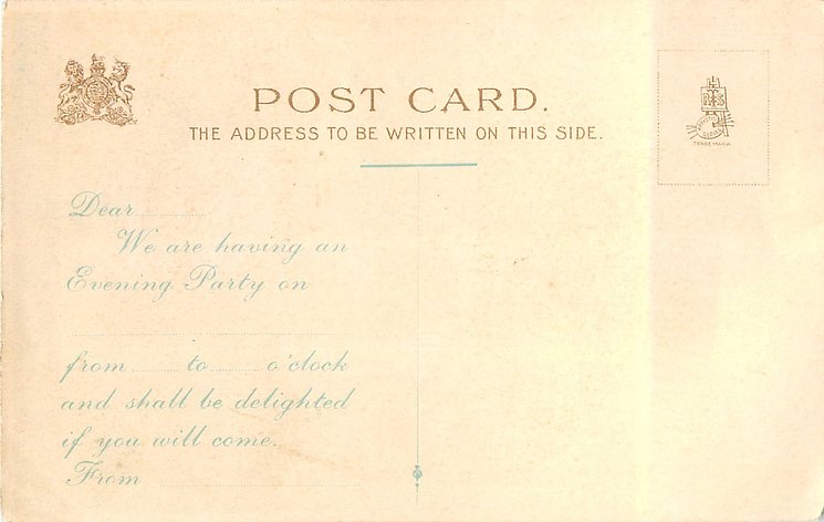 CONNOISSEUR, u/b, DESIGNED IN ENGLAND, CHROMOGRAPHED IN PRUSSIA, come with party invitation on back