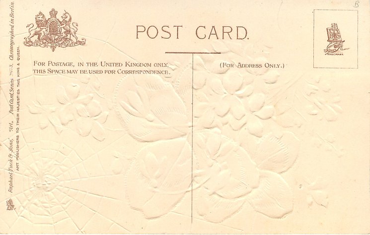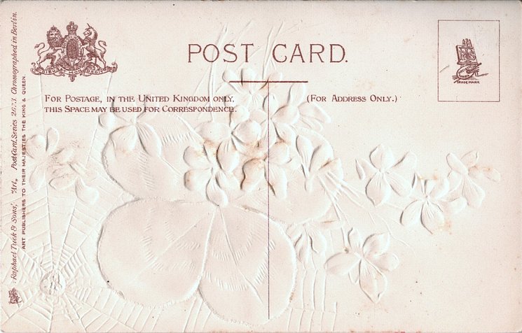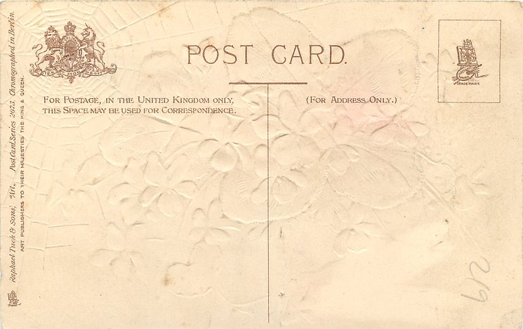 ART, CHROMOGRAPHED IN BERLIN, embossed, listed in 1908/1909 Postcard Catalogue