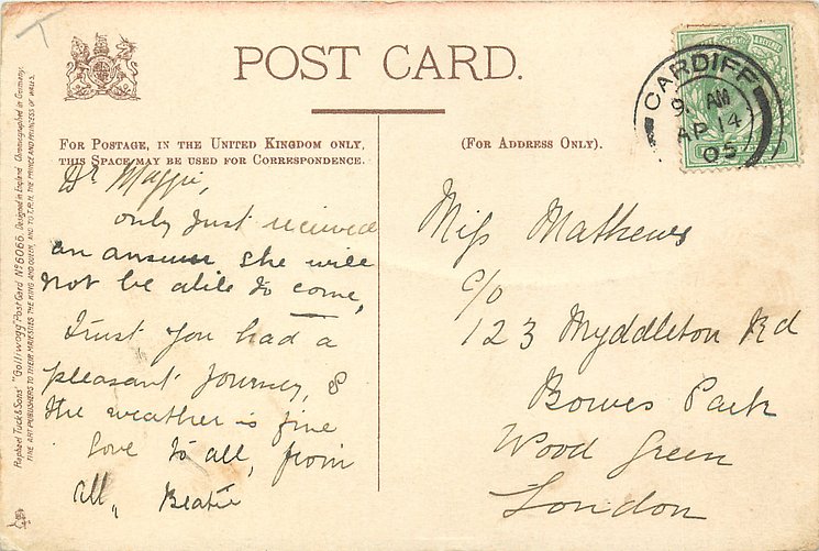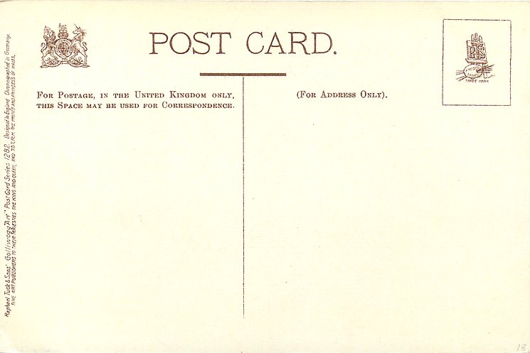 ART, DESIGNED IN ENGLAND, CHROMOGRAPHED IN GERMANY, BY PERMISSION OF MESSRS. LONGMANS, GREEN & CO., listed in 1904 & 1908/1909 & 1912 Catalogues, same images greetings in 1791/2