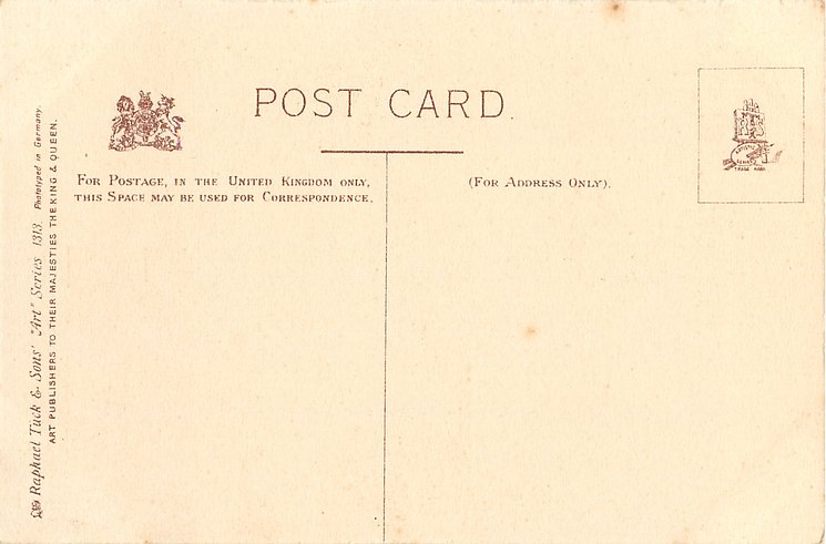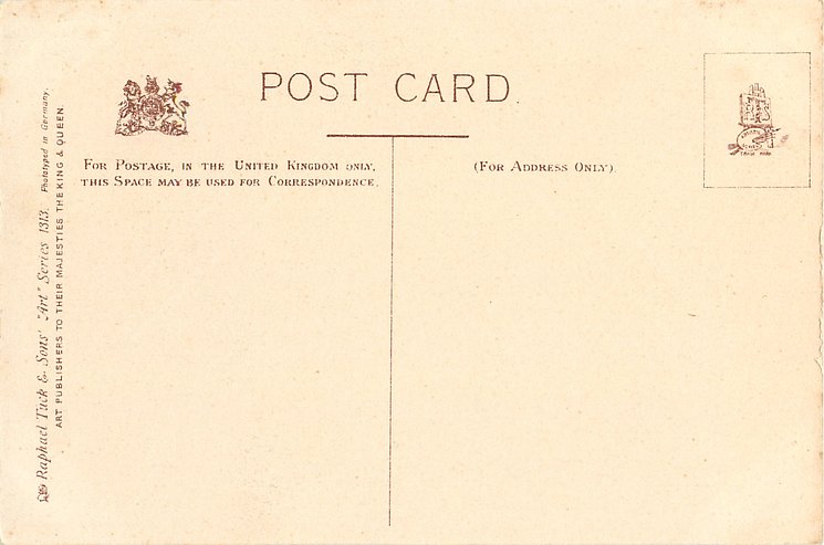 black & white ART, 3 backs, come without card title, PHOTOTYPED IN GERMANY or BERLIN, listed in 1904 POSTCARD Catalogue