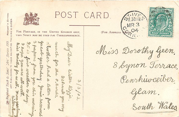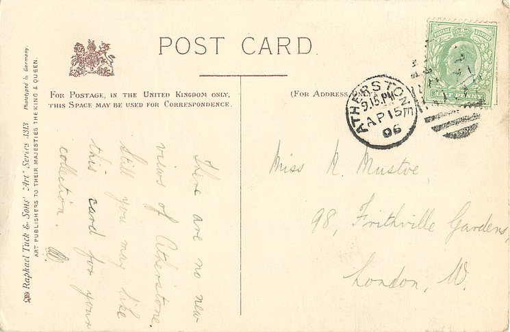 gray/black, ART, PHOTOTYPED IN GERMANY, listed in 1904 POSTCARD Catalogue