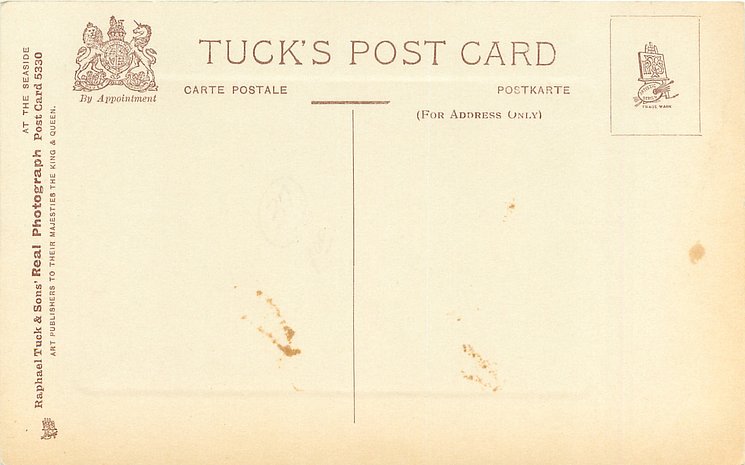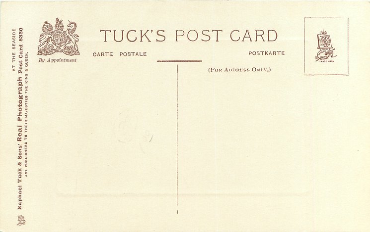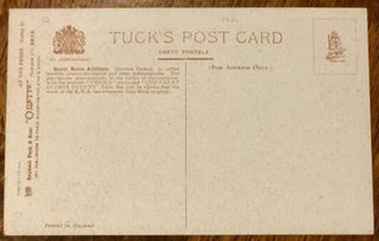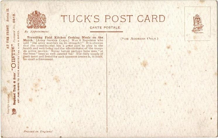 OILETTE, plain back (unnumbered until further information), plain back indicates it may belong to Ephemera Postcard painting book FATHER TUCK'S PATRIOTIC SERIES POSTCARD PAINTING BOOK, see also postcard series 8810 AT THE FRONT