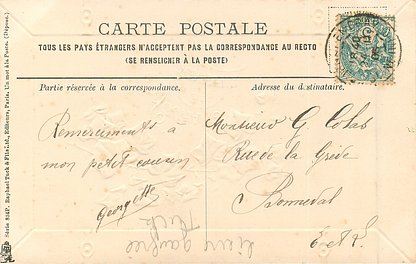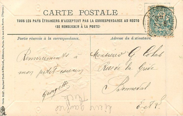UN MOT A LA POSTE, (DEPOSE), suffix P, embossed / bonne fetes is french for happy holiday