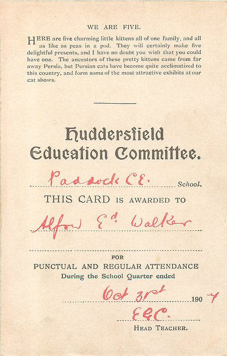 this image & card title used on a reward card by HUDDERSFIELD EDUCATION COMMITTEE