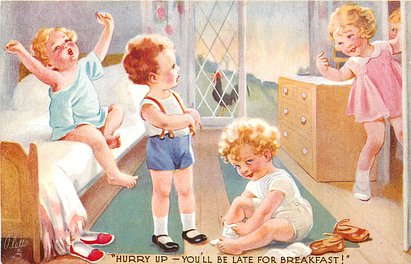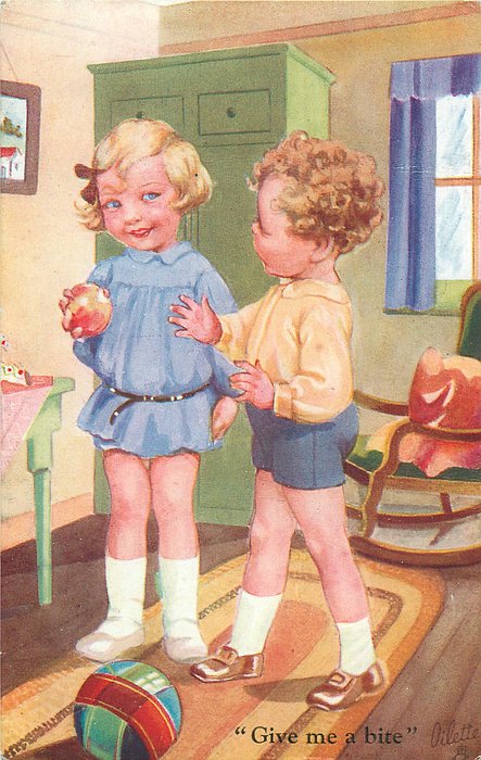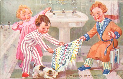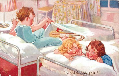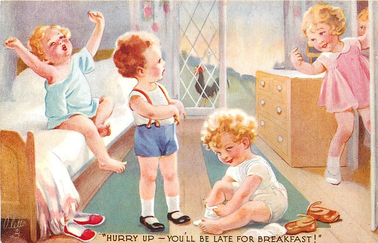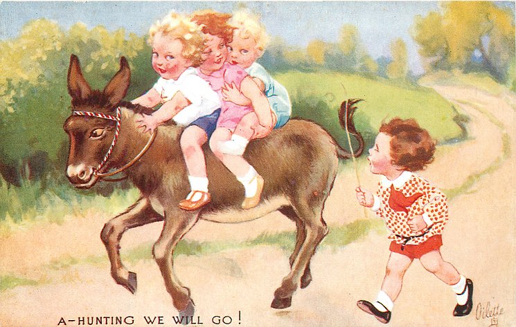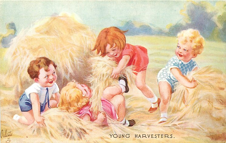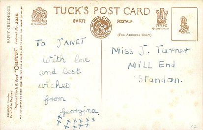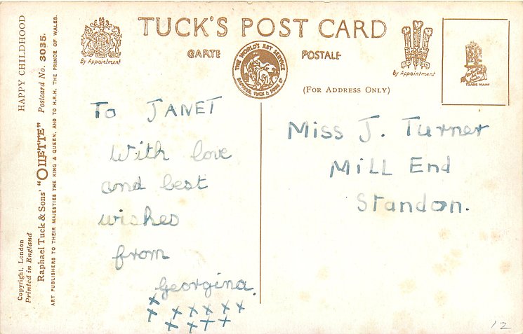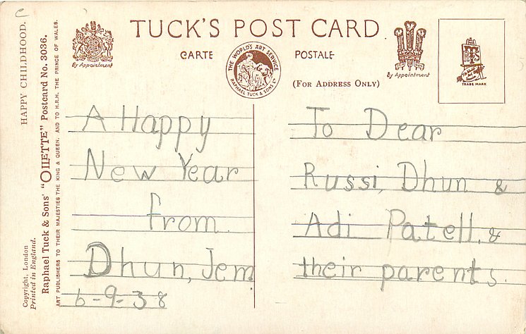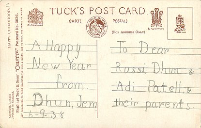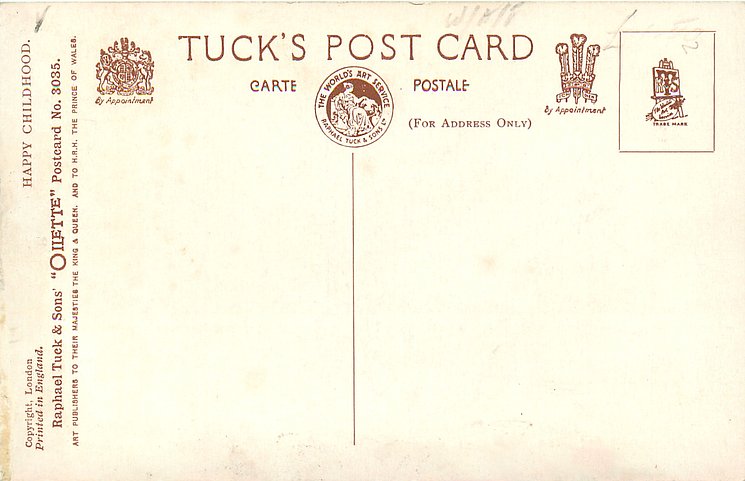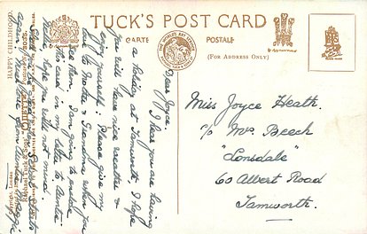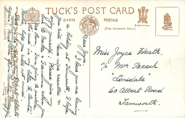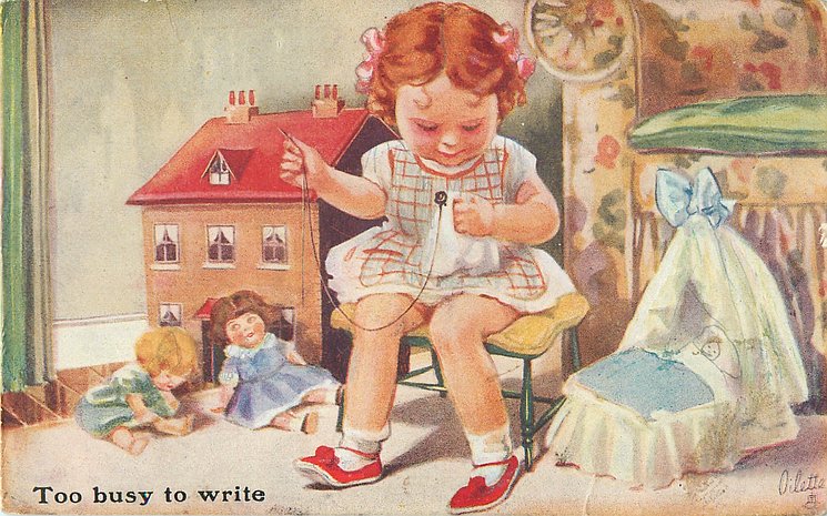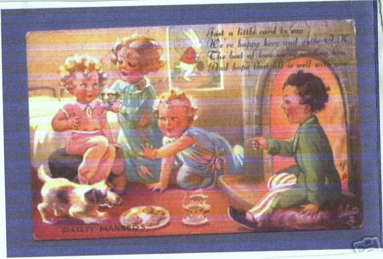 comes with verse upper right:- JUST A LITTLE CARD TO ... WE'RE HAPPY HERE AND QUITE O.K.//WELL WITH YOU.