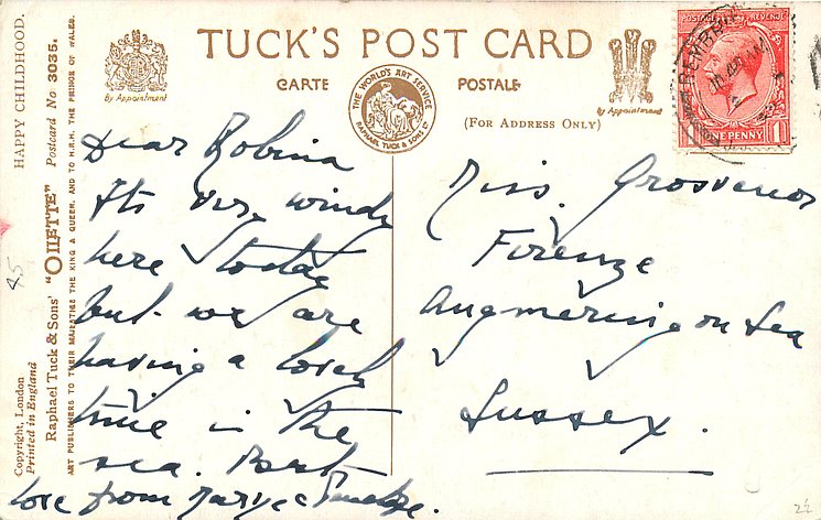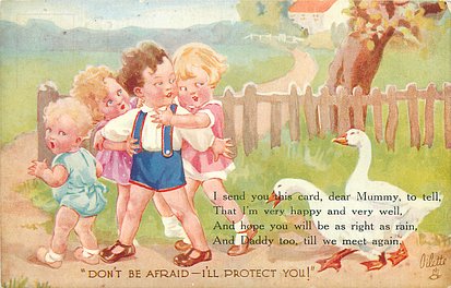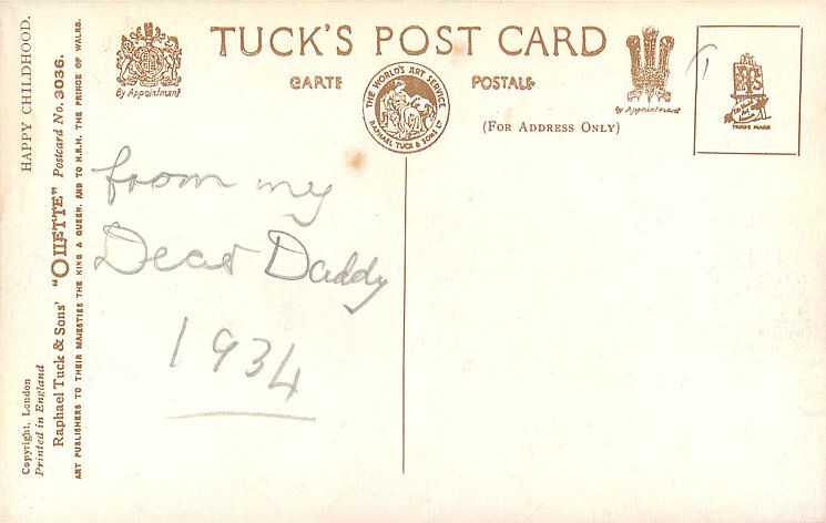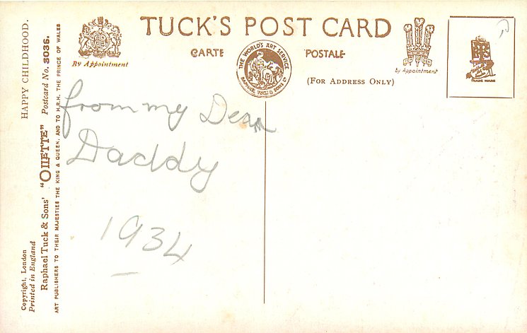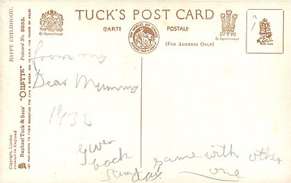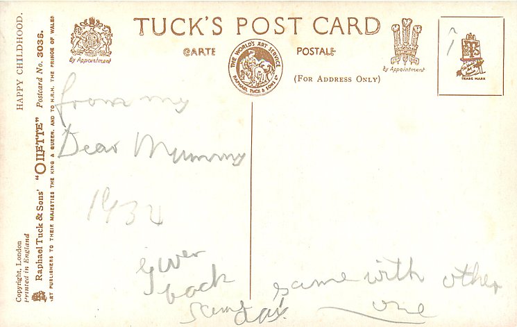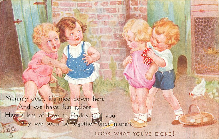 comes opt. in black MUMMY DEAR, IT'S NICE DOWN HERE AND WE HAVE FUN GALORE, HERE;'S LOTS OF LOVE TO DADDY AND YOU, MAY WE SOON BE TOGETHER ONCE MORE!