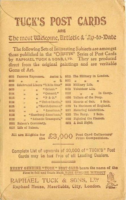 OILETTE, PRINTED IN ENGLAND, listed in 1908/1909 & 1911/1912 & 1913/1914 Postcard Catalogues