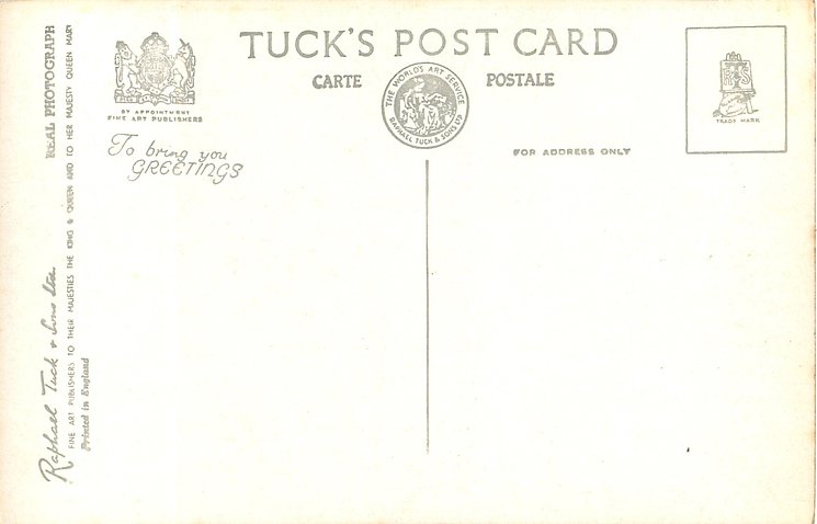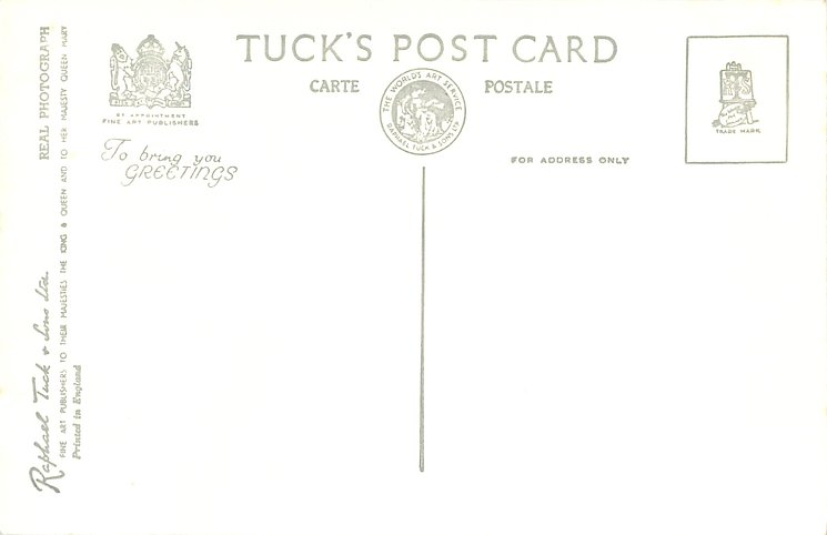REAL PHOTOGRAPH, PRINTED IN ENGLAND, TO BRING YOU GREETINGS or GREETINGS TO YOU on back