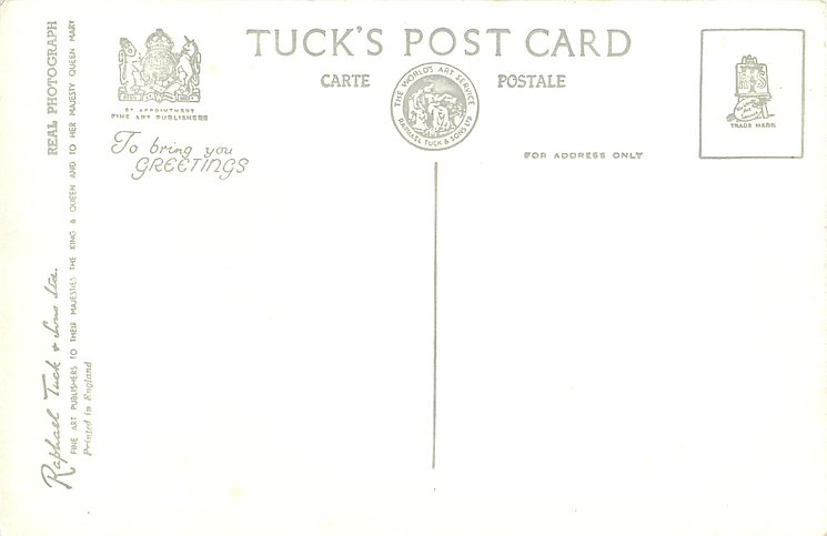 REAL PHOTOGRAPH, PRINTED IN ENGLAND, TO BRING YOU GREETINGS or GREETINGS TO YOU