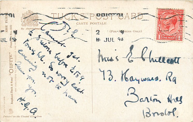 REAL PHOTOGRAPH, PRINTED IN ENGLAND, PUBLISHED FOR E.W. & N.T. PALMER, HIGHCLIFFE STORES, HIGHCLIFFE-ON-SEA.