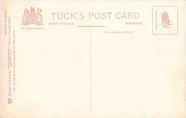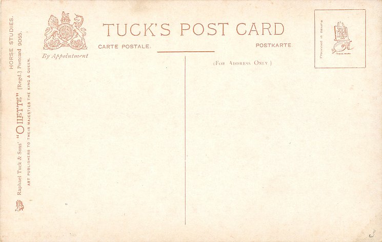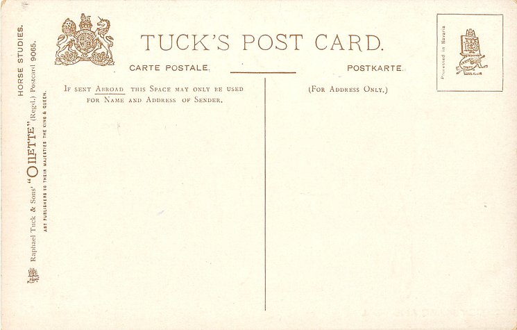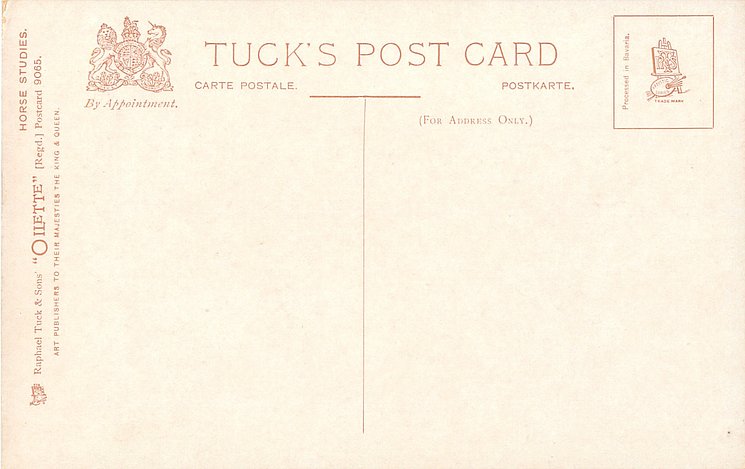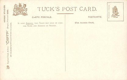 OILETTE, PRINTED IN ENGLAND, COPYRIGHT LONDON, come oilfacsim but not so trade named, come opt.AMEICAN Y.M.C.A., AFTER THE ORIGINAL PAINTING BY HARRY PAYNE, PRINTED IN THE UNITED KINGDOM, listed in1911/1912 & 1912/1913 & 1913/1914 & 1926/1927 & 1930 POSTCARD Catalogues