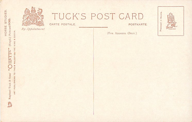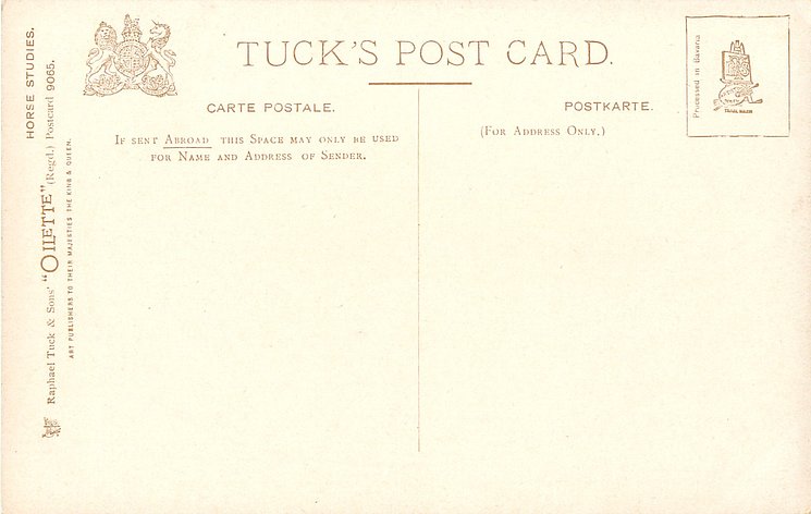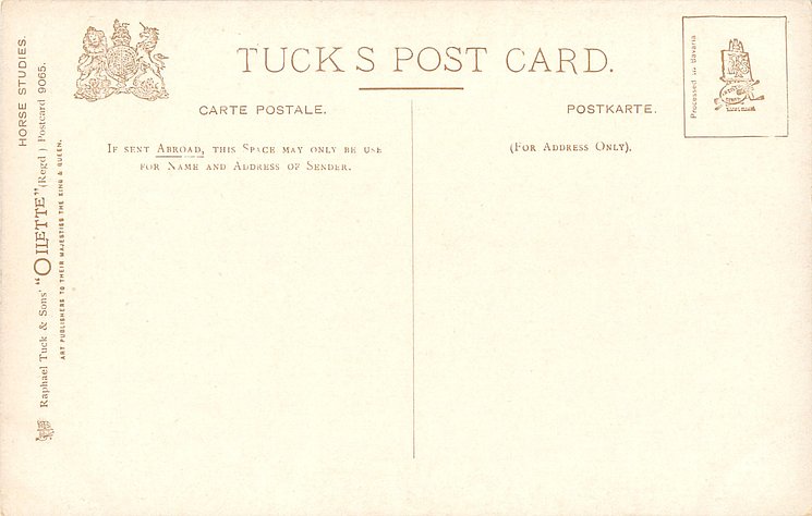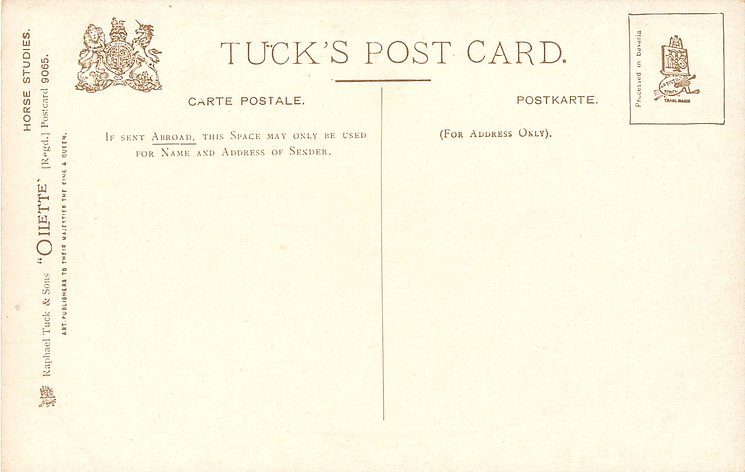 OILETTE, PROCESSED IN BAVARIA (in stamp box), listed in 1908/1909 & 1911/1912 Postcard Catalogue