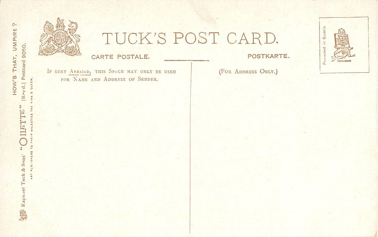 OILETTE, PRINTED IN ENGLAND, 2 backs, listed in 1908/1909 & 1911/1912 Postcard Catalogue