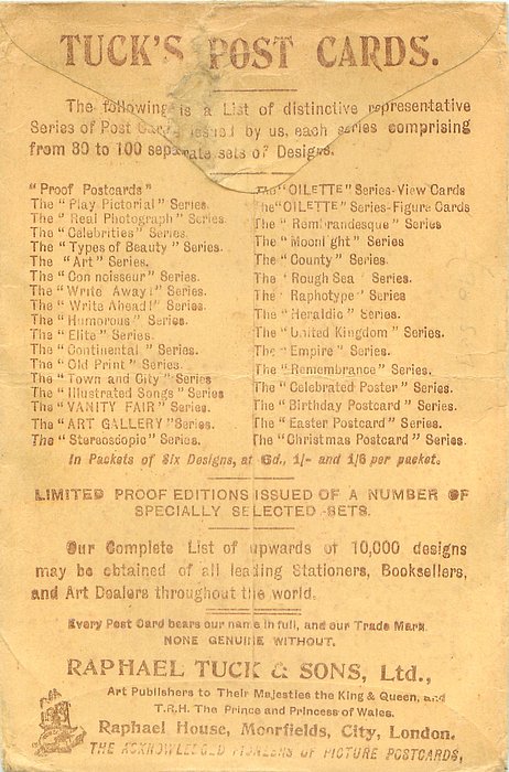 widely recorded but cards never seen, possibly planned but never published, listed in 1904 POSTCARD Catalogue