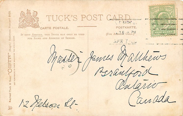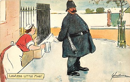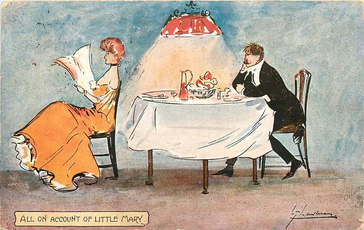 OILETTE, PRINTED IN BAVARIA (in stamp box), LITTLE MARY is the title of 1904 play by Barrie & refers to the stomach