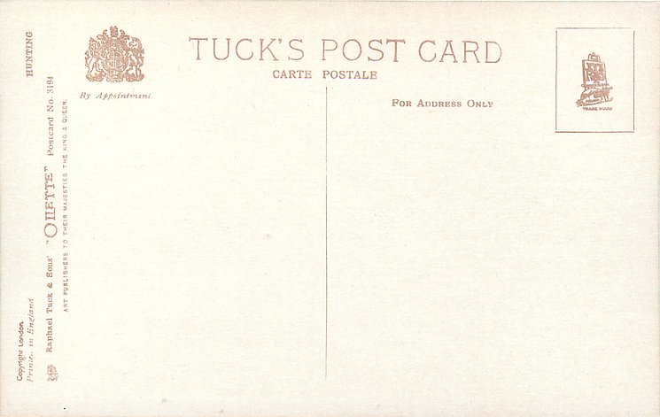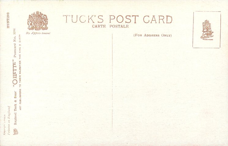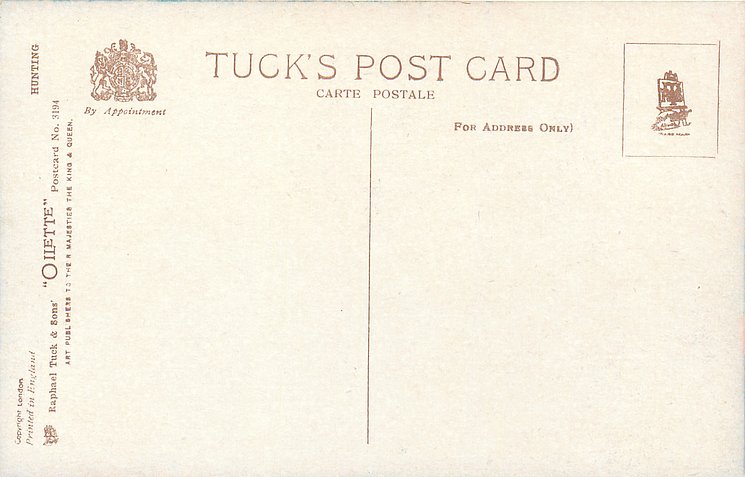 OILETTE, PRINTED IN ENGLAND or PRINTED IN THE UNITED KINGDOM, COPYRIGHT LONDON, come O/F but not so trade named, listed in 1930 & 1926/1927 Postcard Catalogue & 1932 ART SERVICE Catalogue