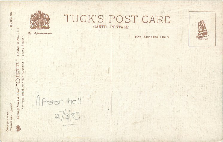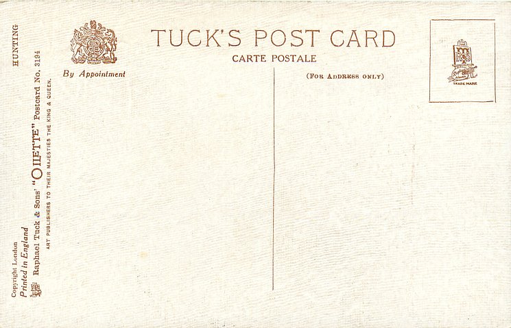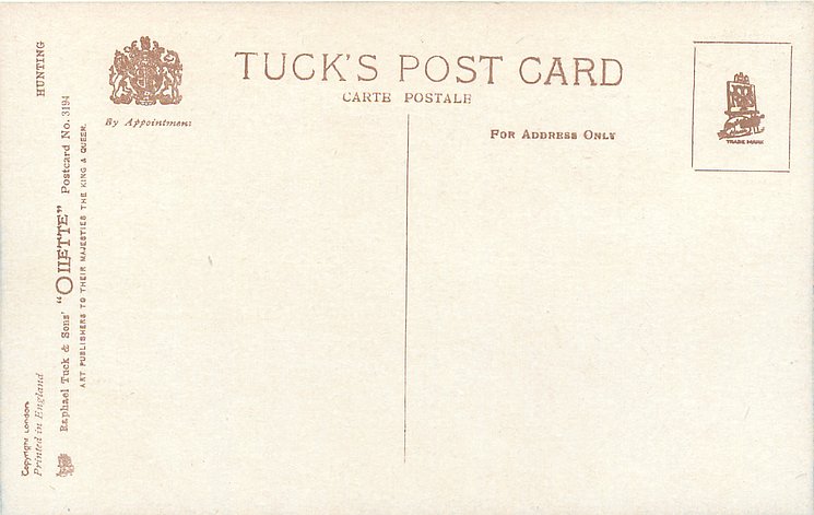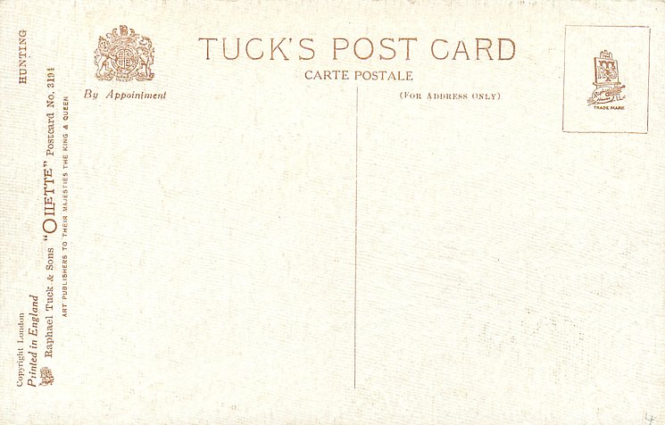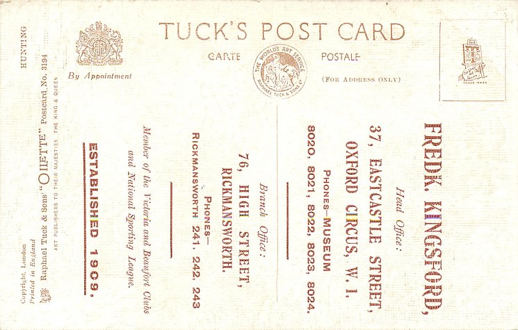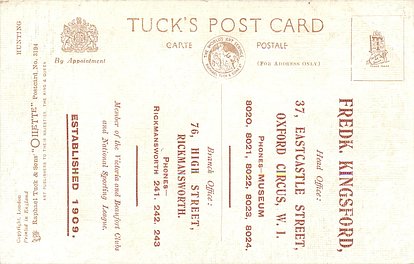 OILETTE, PRINTED IN ENGLAND, COPYRIGHT LONDON, 3 backs, come O/F but not so trade named, come with ad for FREDK KINGSFORD on back, listed in 1930 & 1926/1927 Postcard Catalogues & 1932 ART SERVICE Catalogue