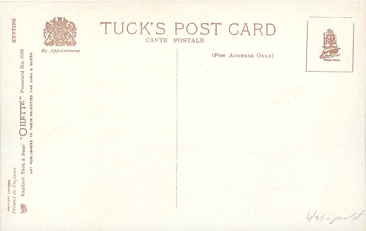 OILETTE, CONNOISSEUR, PRINTED IN ENGLAND, 2 backs, listed in 1908/1909 & 1911/1912 Postcard Catalogue