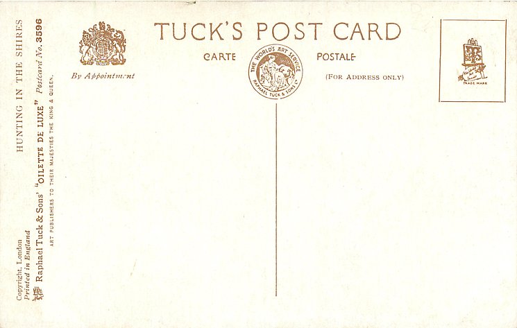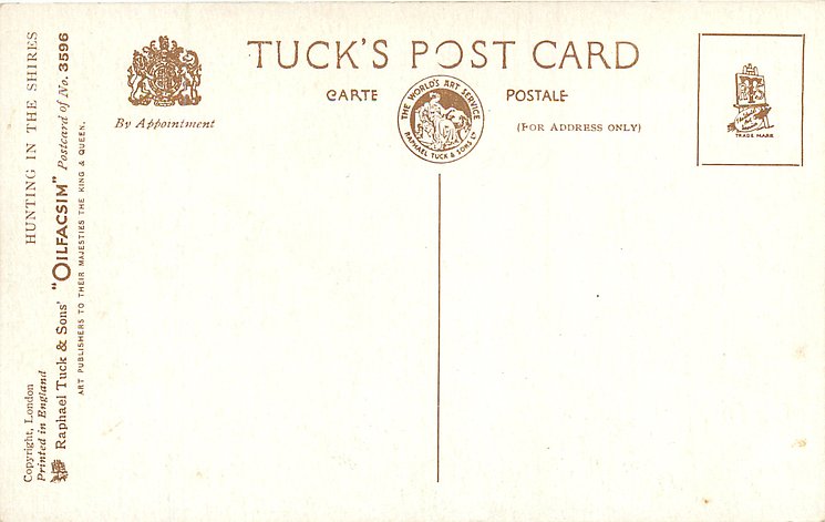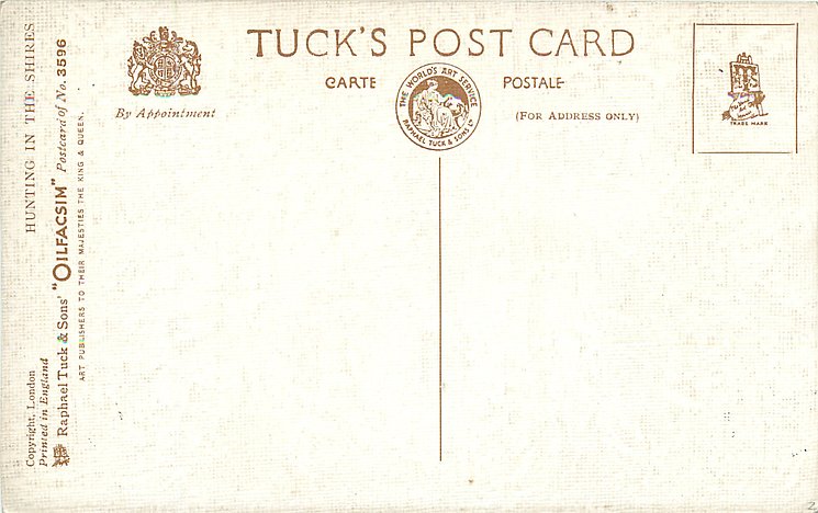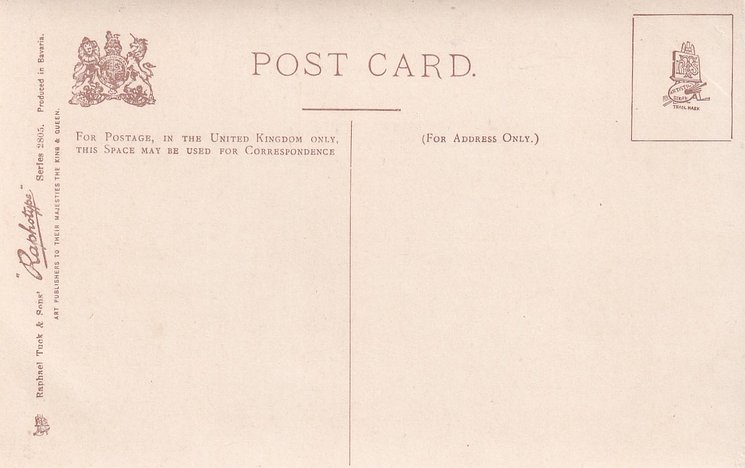 OILETTE, PRINTED IN ENGLAND, COPYRIGHT LONDON, comes OILETTE DE LUXE, comes OILFACSIM w/o prefix, 4 backs, , listed in 1930 Postcard Catalogue & 1932 ART SERVICE Catalogue