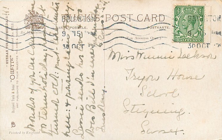 OILETTE, PRINTED IN ENGLAND, listed in 1930 POSTCARD catalogue,